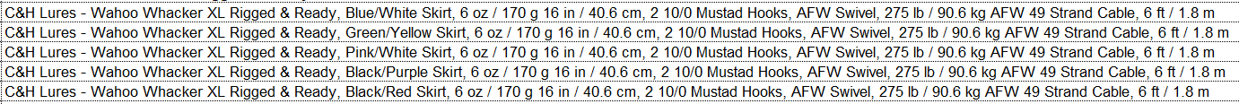 Wahoo absolutely love this big lure trolled at high speeds. The Wahoo Whacker XL has an 11 oz urethane coated head and two 12 inch skirts. This lure is built to handle speeds of 20 knots. Works great with a trolling lead or on the surface. No bait necessary. The XL works best when trolled 8 knots or faster. Catches of large dolphin and blue marlin have also been reported. Made in USA.