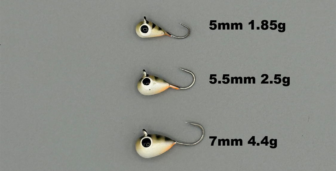 Our FISH307 exclusive Ice Jigs come in three different sizes and ten different patterns!